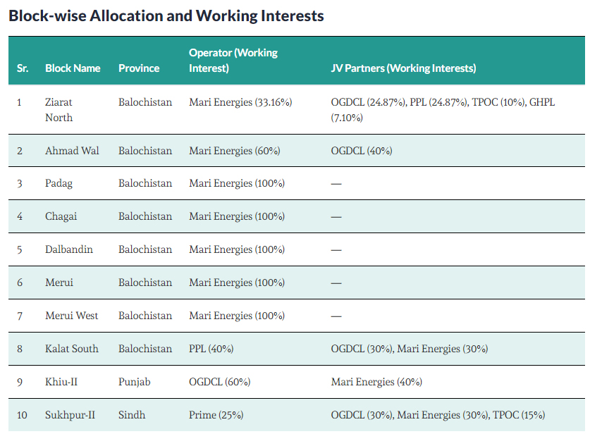 ISLAMABAD:Mari Energies Limited (PSX: MARI) has secured provisional petroleum exploration rights for ten new onshore blocks across Pakistan following a competitive bidding round held by the Directorate General of Petroleum Concessions (DGPC) on April 30, 2025.According to a filing submitted to the Pakistan Stock Exchange (PSX) on May 14, 2025, MARI has been awarded seven blocks as the sole operator and will participate in three others as a joint venture (JV) partner.The company will collaborate with leading state-owned and private energy firms, including Oil and Gas Development Company Limited (OGDCL), Pakistan Petroleum Limited (PPL), Prime Global Energies Limited, Turkish Petroleum Overseas Company (TPOC), and Government Holdings Private Limited (GHPL).The provisional award is subject to several conditions: issuance of exploration licenses by the government, execution of petroleum concession and joint operating agreements, and completion of other legal and procedural formalities.MARI added that this expansion of exploration acreage shows that it is committed to discovering new hydrocarbon resources in the country.