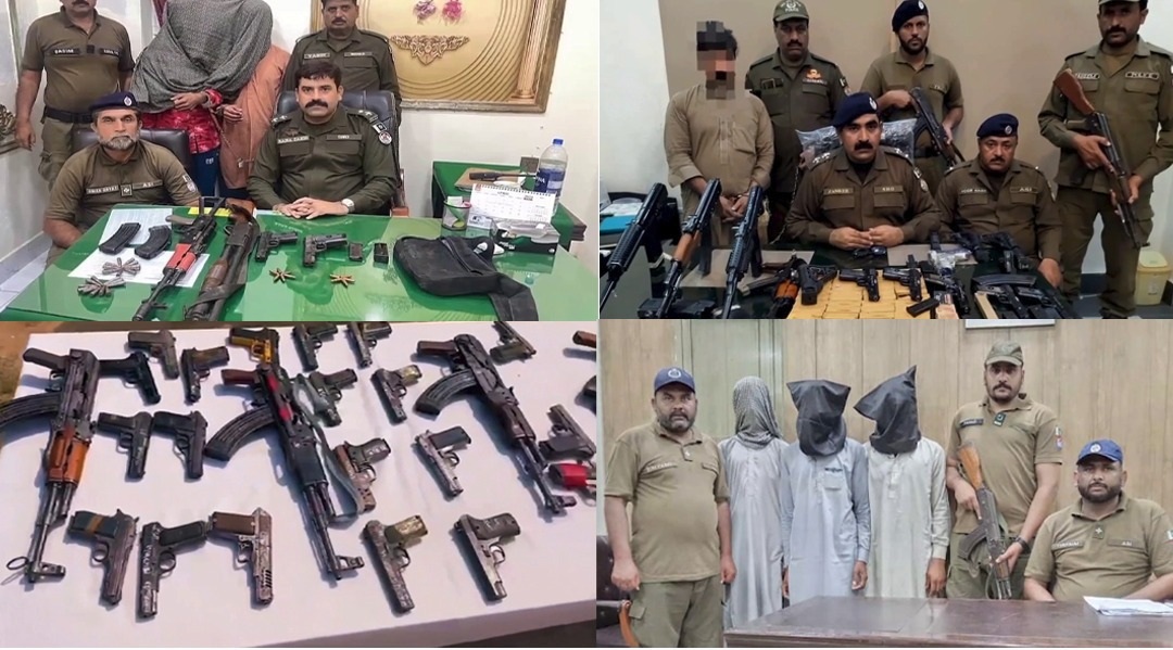 Lahore:Punjab Police, continuing its rigorous crackdown against organized criminal groups across the province including Lahore, arrested 23 members of 10 gangs within the past 24 hours. According to the Punjab Police spokesperson, a substantial cache of weapons was recovered from the arrested suspects, including Kalashnikovs, pistols, rifles, revolvers, shotguns, and hundreds of bullets, approximately 100 firearms. From the possession of the accused, police also recovered four vehicles, fifty-three motorcycles, four tolas of gold, twenty-two mobile phones, six livestock animals, and nine million rupees in cash. The spokesperson further said that during these operations, two hundred and sixty-seven proclaimed offenders, one hundred and sixty-five court absconders, and sixty-eight habitual criminals were also apprehended. In addition, five criminals were neutralized during police actions, eleven were injured, and twelve were arrested. Inspector General of Police Punjab Dr. Usman Anwar has issued directives for the continuation of these operations with full force to further intensify the efforts against criminal elements across the province.