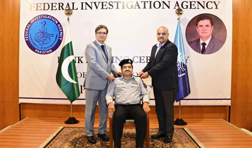 Islamabad:A ceremony to assign ranks to officers recently promoted from assistant director to deputy director was held at the Federal Investigation Agency (FIA) Headquarters in Islamabad on Friday.Director General FIA Riffat Mukhtar Raja attended the event as the chief guest, while additional director generals and directors from various wings of the agency were also in attendance.The rank badges were formally conferred by DG FIA Riffat Mukhtar Raja along with ADG Headquarters Jan Muhammad, ADG Immigration Shakeel Durrani, and ADG Anti-Corruption Wing Muhammad Jaffar.Among those promoted were Jawad Ali, Bilal Tariq, Amir Iqbal, Fahad Khawaja, Jair Nasrani, Nazia Ambreen, Rabia Qureshi, Shahid Habib, and Shiraz Ahmed.Officers Shawaz Ahmed, Sajid Amin, Ajmal Sadiq, Abdul Rauf, Ahmar Naeem Sindhu, Adeel Abbas, Muhammad Ajmal, and Haroon Malik were also elevated to the rank of deputy director.Speaking on the occasion, DG FIA extended his congratulations and best wishes to the newly promoted officers, acknowledging their professional commitment and contributions to the agency’s mission.