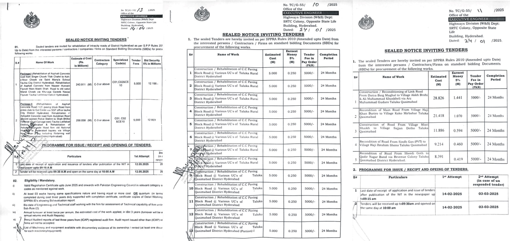 Hyderabad :Despite tenders worth more than Rs 70 crore for the repair and construction of roads and paths in different areas of Hyderabad district, the work of Hyderabad Rural, Hyderabad City, Latifabad and Qasimabad roads has not been started yet. It has been revealed that the department has been paying advance payments for years, doubling up on the development works of local government and HMC, showing the completed works of the aforementioned institutions and embezzling money through corruption in funds worth crores of rupees released from the national treasury of Sindh in exchange for working on the sides, and collecting commissions of lakhs of rupees based on work orders on tenders for development schemes. In this regard, informed sources have further revealed that the office of the Executive Engineer of the District Highways Division, Hyderabad, has issued a tender number TC/G-55/13/2025 dated On 14-04-2025, two packages of development works worth approximately Rs 50 crore were published. The first opening date of the tenders was 12-05-2025 and the second opening date was 29-05-2025. According to informed sources, tender number TC/G/55/10/2025 was published on 24/01-2025, in which 31 works of repair and construction of roads in different areas of Hyderabad district have been shown. The tender was to be opened by the Executive Engineer and other staff of the concerned office in the first opening on 14-02-2025 and the second opening date was 3-3-2025, while tender number TC/G-55/11/2025 was published on 24-01-2025. The first opening date of the relevant tender was The date was 14-02-2025 and the second date of opening was 3-3-2025, which the office of the Executive Engineer of the tenders delayed instead of opening the tender on the scheduled time by giving the lie to scrutiny and awarded the contracts of these development schemes worth crores of rupees to their preferred contractor and allegedly received huge commissions for work orders from these preferred contractors. In this regard, informed sources have revealed that the alleged mega-corrupt officers and clerks of the District Highways Department Hyderabad have also issued advance payments to their preferred contractors from the amount of crores of rupees released from the public treasury of Sindh for these development works in different areas of Hyderabad district, while the work on the sides has not even started yet. According to informed sources, there is a record of corruption, commission, doubling of development schemes, working on sides in District Highways Hyderabad. This process of embezzling crores of rupees from the government and public treasury has been going on for the past few years, against which complaints have been made to the Anti-Corruption Department officials and other relevant authorities. But till date, no formal inquiry has been started against the influential corrupt mafia present in District Highways Hyderabad, nor have any corruption cases been filed against such influential corrupt mafia. In return, the said influential corrupt mafia uses the formula of persuasion to get the inquiries and complaint files against them closed. Informed sources have further revealed that the entire network of influential corrupt mafia present in District Highways Hyderabad is being run by a Bill Clarke present there, who has the blessings of an influential official of the Deputy Commissioner’s Office Hyderabad and influential political houses of Hyderabad, and as the influential Bill Clarke wants, he is the executive director of the Hyderabad Highways Authority. The staff of engineers, accounts officers and other employees are appointed and work in the office of Highways Hyderabad. This is the reason why till date no legal action is being taken against the said influential Bill Clark and the executive engineers, accounts officers, preferred contractors and other clerical staff working with him. In this regard, professional contractors said on condition of anonymity that District Highways Hyderabad is no longer a government and public institution but has become a market for the Mahar-Corrupt Mafia and record corruption and commission. The roads and routes here are not completed with the crores and billions of rupees released from the public treasury of Sindh for the basic facilities of the people of Hyderabad District, but that huge amount of government and public treasury is inevitably exposed to the record corruption and commission of the said influential corrupt mafia. They further said that the condition of District Highways Hyderabad is that the officers, clerical staff and their In exchange for completing the work on the side, the preferred contractors of the local government and HMC institutions show the development schemes of the institutions but do not do any work on their basis. While showing all the development schemes as completed in the paper records, they squander government and public funds worth crores and billions of rupees and show the sides of the works of the local government and HMC and say that these are our works, which we have completed, which is a great injustice and punishment. The professional contractors have strongly demanded from the President, the Prime Minister, Pakistan Peoples Party Chairman Bilawal Bhutto, CM Sindh, NAB Chairman, Anti-Corruption Chairman Sindh and other authorities to take large-scale legal action against the influential corrupt mafia present in the District Highways Division Hyderabad and file corruption cases against them and remove the elements involved in this influential corrupt mafia from their posts and punish them. On the other hand, when I had to go to the office of the District Highways Hyderabad to take a stand, there Neither an executive engineer, nor an accounts officer, nor a tender clerk, nor an influential bill clerk could be found.