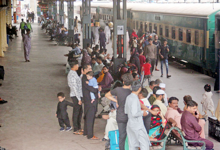 [caption id="attachment_2745" align="alignnone" width="503"]<img class=" wp-image-2745" src="https://dailydateline.com/news/wp-content/uploads/2022/08/202208251754397410-2-300x205.jpg" alt="" width="503" height="344" /> KARACHI: People are waiting of train at Cannt Railway Station, as train delayed due to heavy trains in the entire country, which has resulted in damage on several railways tracks especially in rural parts of Sindh[/caption]
