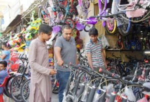 LAHORE: A men is buying an imported sports bicycle at Neela Gaband Cycle Market