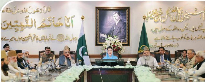 LAHORE:Punjab Chief Minister Maryam Nawaz Sharif presided over a meeting of the Ittehad Bain-ul-Muslimeen Committee, here on Wednesday.On Chief Minister Punjab’s request, Chairman of Tanzeem-ul-Madaris Ahl-e-Sunnat Pakistan Mufti Muneeb-ur-Rehman attended the meeting as a special guest. She warmly welcomed the Ulema and Mashaikh. Scholars from all schools of thought expressed their complete support for the Punjab government’s principled stance and endorsed its efforts for maintaining peace in the province.During the meeting, it was decided that the management of sealed mosques would be handed over to Tanzeem-ul-Madaris Ahl-e-Sunnat Pakistan. She directed immediate release of individuals proven innocent and directed officials to ensure their dignified return home. She also directed to ensure maintenance of respect for religious symbols and sacred names appearing on posters and banners.The CM agreed in principle to grant a monthly stipend of Rs. 25,000 for mosque Imams. Provincial Minister Khawaja Salman Rafique and Secretary Law & Order were appointed as focal persons for maintaining liaison with the Ulema. The meeting was briefed that reports regarding innocent detainees can be made via helpline 15.