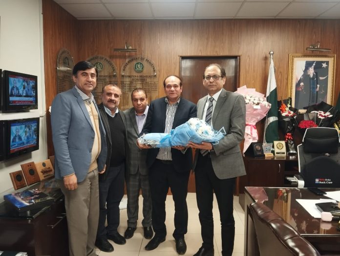ISLAMABAD:Senior Director of Pakistan Television (PTV), Khawaja Salahuddin on Friday congratulated Federal Secretary Information and Broadcasting, Ashfaq Ahmed Khalil, in his office on assuming the charge.Khawaja Salahuddin expressed his best wishes and thanking him for his dedication to public service, said a press release. Controllers of Engineering at PTV, Azhar Hassan Khan, Sheikh Abdul Jabbar, and Faisal Hayat Khan were also present on this occasion.He said that Ashfaq Ahmed Khalil, based on his professional skills and experience, will play a key role in further enhancing the ministry’s progress and public coordination.Ashfaq Ahmed Khalil has previously served as Additional Secretary at the Ministry of Information and Broadcasting and has held important positions such as Director General at the Press Information Department Peshawar and Press Counsellor at the Pakistan Embassy in Tokyo, Japan.Khawaja Salahuddin said that the new appointment will ensure continuity at the administrative and policy levels in the ministry and will make government coordination more effective.
