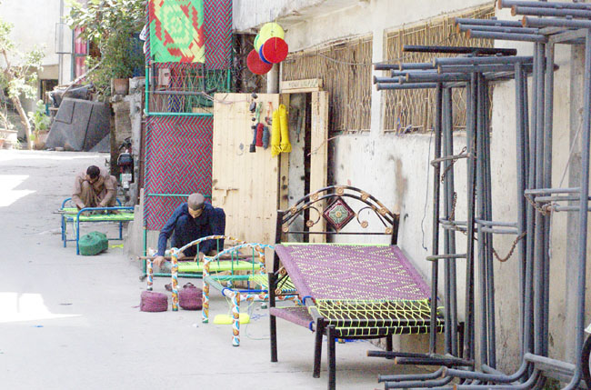 Pic31-017 RAWALPINDI-Aug31: Workers are busy in preparing traditional charpoy at their work place alongside Gawalmand road, in the city. ONLINE PHOTO by Raja Asim