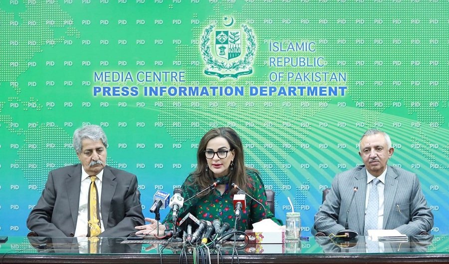 Islamabad: Federal Minister for Climate Change Sherry Rehman speaks at the press conference.