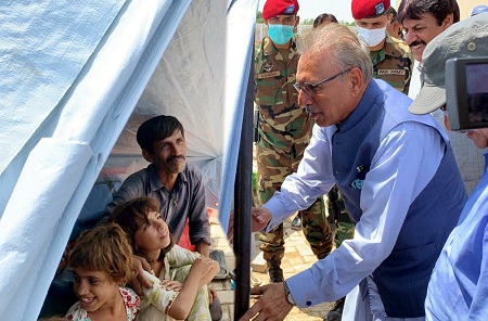 BALOCHISTAN: President Dr. Arif Alvi visiting the flood relief camp in Naseerabad.