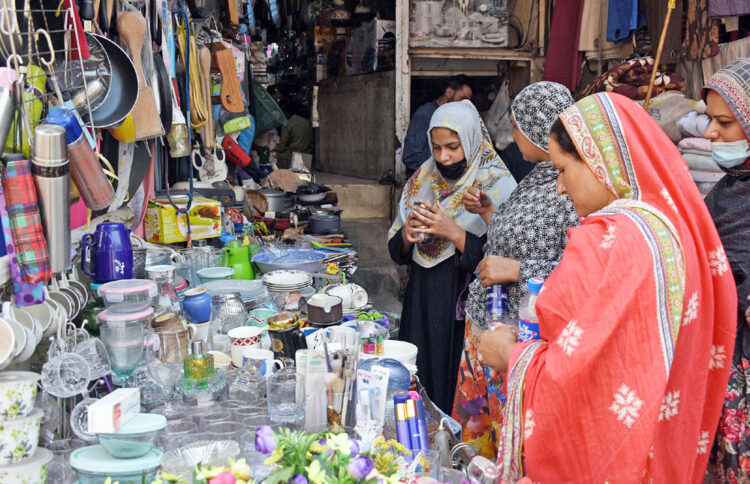 [caption id="attachment_3688" align="aligncenter" width="300"]<img class="size-medium wp-image-3688" src="https://dailydateline.com/news/wp-content/uploads/2022/09/202209031805052158-300x194.jpg" alt="" width="300" height="194" /> LAHORE: Women busy in purchasing second hand vessels from a shop at Nolakha Bazar in Provincial Capital[/caption]