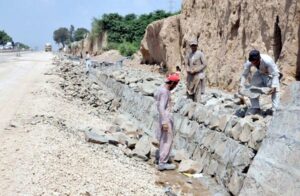 ISLAMABAD: Labours busy in construction work at Islamabad Expressway