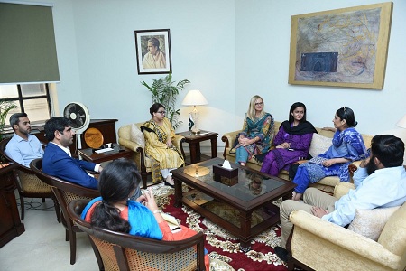 ISLAMABAD: SAPM on Youth Affairs Miss Fatima Khawaja in a meeting with members of British Council.