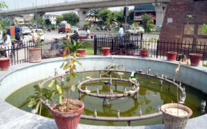 RAWALPINDI-Sep12: A view of accumulated rain water in out of order fountain which may cause to born dengue larwa, in the city. As need to attention concern authority. There has been a spike in dengue cases across the country and the health authorities have feared Pakistan might face an outbreak of the mosquito-borne disease in the coming days ONLINE PHOTO by Raja Asim