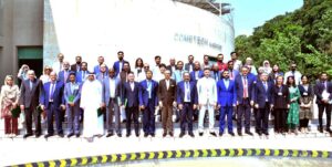 ISLAMABAD: Persident Dr Arif Alvi with the participants of the Kazakhstan-Pakistan-Turkey Youth Forum on Biotechnology, at COMSTECH’s Secretariat.