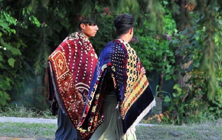 ISLAMABAD: Labourers on the way carrying rugs on their shoulders near G8