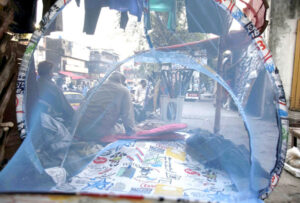 Pic14-039 ISLAMABAD-Sep14: A vendor displayed sleeping mosquitoes net bed alongside a road at Aabpara Market, in Federal Capital. The twin cities saw a sharp increase in dengue cases in the last few days, health officials, meanwhile, have warned that owing to warmer temperatures, the dengue season could prevail a while longer, while doctors are concerned about the large influx of patients from Islamabad. ONLINE PHOTO by Waseem Khan