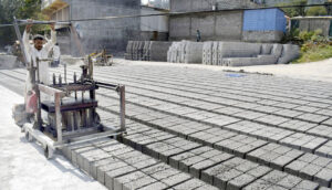 Pic21-037 MUZAFFARABAD-Sep21: A labourer making cemented blocks at a factory during hot weather, in the city. ONLINE PHOTO by Shabir Anjum