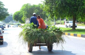 FAISALABAD: An old man and woman on the way on a horse cart at H-8 road