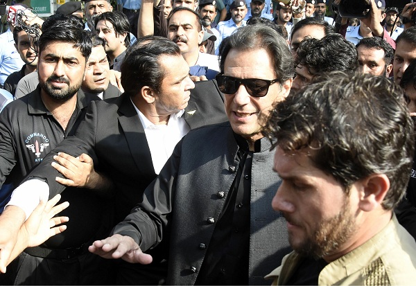 ISLAMABAD: Former Prime Minister and Chairman Pakistan Tehreek-e-Insaaf Imran Khan leaves after appearing before the High Court in Federal Capital. Imran Khan has apologized for criticizing a magistrate, his lawyer said in the hearing, likely averting a court case which could have seen him barred from holding office.