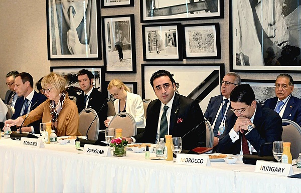 NEW YORK: Foreign Minister of Pakistan Bilawal Bhutto Zardari addressing during 12th Ministerial Meeting of the United Nation Group of Friends (GOF) of Mediation on the sidelines of the 77th Session of the United Nations General Assembly.