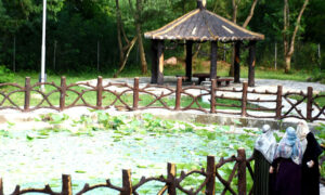 Pic25-012 ISLAMABAD-Sep25: A family enjoying Sunday holiday at lotus flower lake (Kanwal Lake) at Shakarparian, in Federal Capital. ONLINE PHOTO by Sultan Bashir
