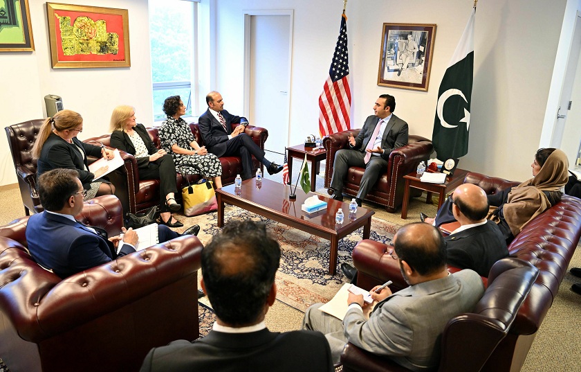 WASHINGTON: Foreign Minister Bilawal Bhutto Zardari meeting with US Special Representative for Commercial and Business Affairs Dilawar Syed in Washington.