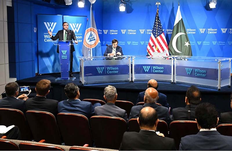 WASHINGTON: Foreign Minister Bilawal Bhutto Zardari addressing during participated in the talks on Pakistan's Foreign Policy Priorities at Wilson Center.