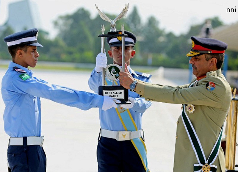 Risalpur: General Nadeem Raza Chairman Joint Chiefs of Staff Committee, awarding Best Allied Cadet Trophies to Royal Saudi Air Force Cadets at the Graduation Ceremony held at PAF Academy, Asghar Khan.