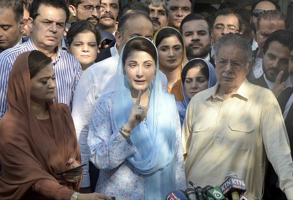 ISLAMABAD: Vice President of Pakistan Muslim League (N) Maryam Nawaz talking to media persons outside Islamabad High Court in Federal Capital. Four years after their conviction, PML-N Vice President Maryam Nawaz and her husband Captain (retd) Safdar were acquitted in the Avenfield properties corruption reference after the Islamabad High Court overturned the July 2018 verdict.