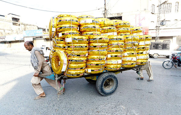 RAWALPINDI: A labourer is pulling a heavily loaded handcart to earn some livelihood for his family at sadar Road