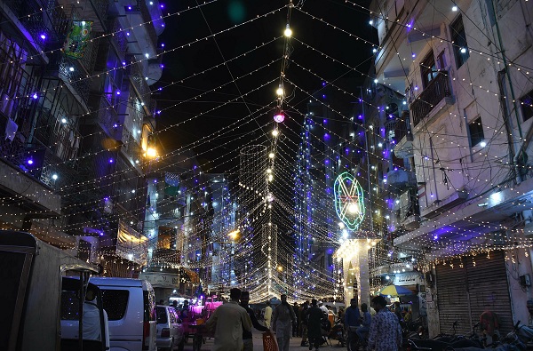 KARACHI: An illuminated view of Shagle street in Provincial Capital decorated with colorful lights ahead of Eid Milad-un-Nabwi (SAW) held on 12th Rabi-ul-Awal the birth anniversary of Muslims’ beloved Prophet Mohammad (PBUH).