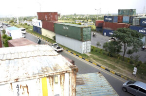 ISLAMABAD: A view of containers place alongside Faizabad flyover in Federal Capital. Government is making security arrangements in the Islamabad to deal with the expected long march of Pakistan Tehreek-e-Insaf. Containers have been installed in the entrances of the capital while security wall is being built in the red zone area to deal with the attendants of PTI long march