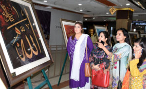 [caption id="attachment_6963" align="aligncenter" width="434"]<img class=" wp-image-6963" src="https://dailydateline.com/news/wp-content/uploads/2022/10/202210071737269628-300x184.jpg" alt="" width="434" height="266" /> ISLAMABAD: Women takes keen interest calligraphic art during Exhibition on Title “A Soulgraphic Express” by Wasil Shahid at Centaurus Mall in Federal Capital[/caption]