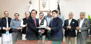the President ICCI, Ahsan Zafar Bakhtawari at the signing ceremony of MoU between