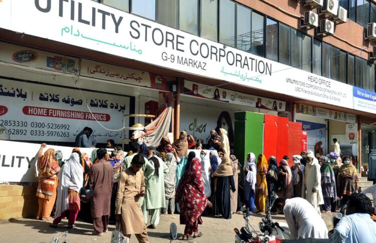 [caption id="attachment_7067" align="aligncenter" width="421"]<img class=" wp-image-7067" src="https://dailydateline.com/news/wp-content/uploads/2022/10/202210081739348773-300x194.jpg" alt="" width="421" height="272" /> ISLAMABAD: Women stands in a long queue outside Utility Store G-9 Markez[/caption]