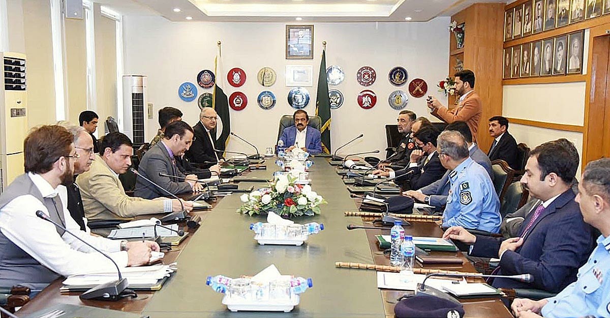 ISLAMABAD: Federal Minister for Interior Rana Sana Ullah Khan chairing a meeting to finalize strategy on PTI Long March.