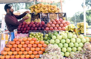 Islamabad: A vendor is displaying fruits on his pushcart