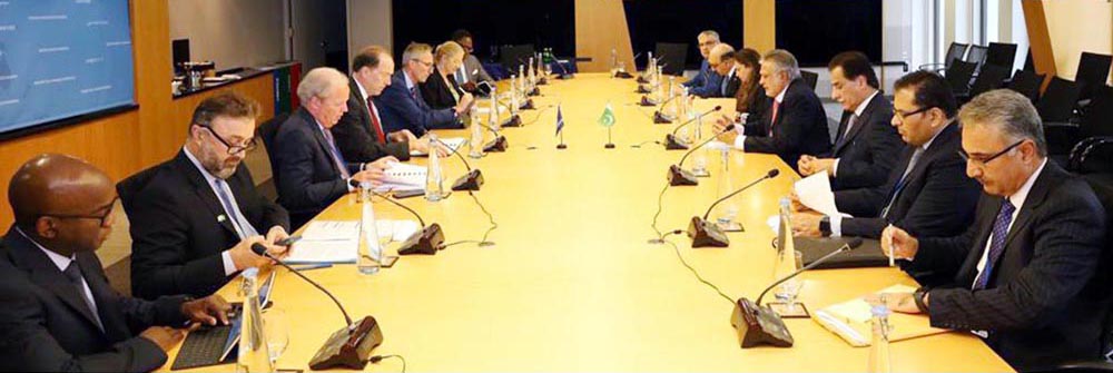 Washington Dc: Finance Minister Senator Muhammad Ishaq Dar in a meeting with President World Bank David Malpass. NNI, October 14, 2022
