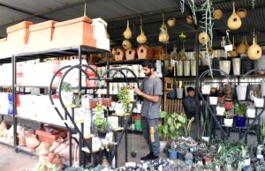 ISLAMABAD: A vendor is displaying Flower potattraction for costumers for selling purpose in his shop in sector H-9, in Federal Capital