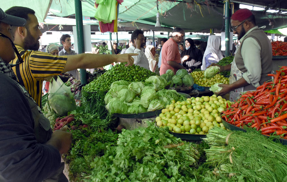 Pic16-033 ISLAMABAD-Oct16: People are busy in purchasing vegetables from a stall at Sunday weekly Bazar, Peshawar Mor in Federal Capital. ONLINE PHOTO by Sultan Bashir