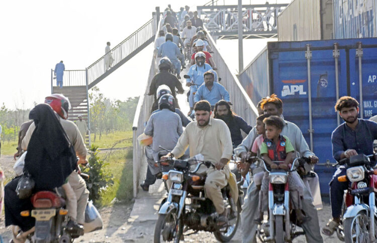 [caption id="attachment_7880" align="aligncenter" width="300"]<img class="size-medium wp-image-7880" src="https://dailydateline.com/news/wp-content/uploads/2022/10/202210161809314616-300x194.jpg" alt="" width="300" height="194" /> LAHORE: Large number of motorcyclists on the way driving their motorcycle on a pedestrian bridge at Srinagar Highway in Federal Capital[/caption]