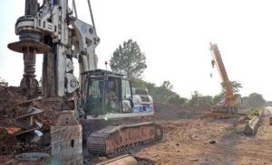 ISLAMABAD: Labourers busy in construction work of Bhara kaho bypass with heavy machinery along Muree road