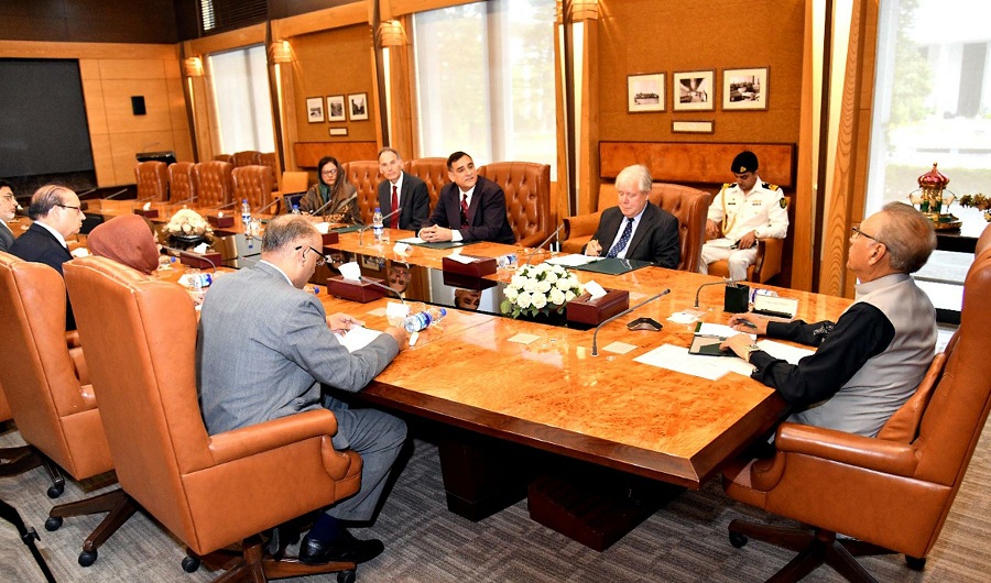 Islamabad: President Dr Arif Alvi in a meeting with the delegation of the Royal College of Physicians UK, led by Prof Charles Twort, at Aiwan-e-Sadr.