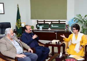 ISLAMABAD: Special Assistant to the Prime Minister on Youth Affairs Miss Shaza Fatima Khawja in a meeting with PML (N) politician Rana Mashood