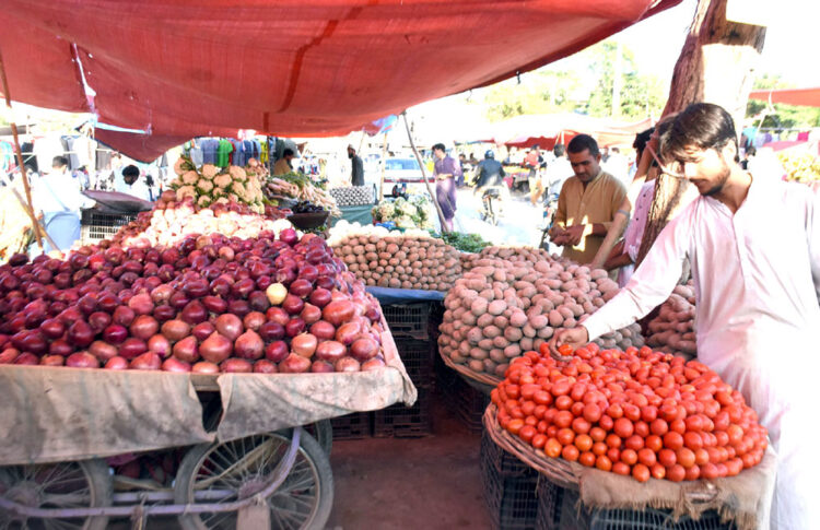 ISLAMABAD: People are busy is buying vegetables in a local bazaar at Khanna Pull area in Federal Capital