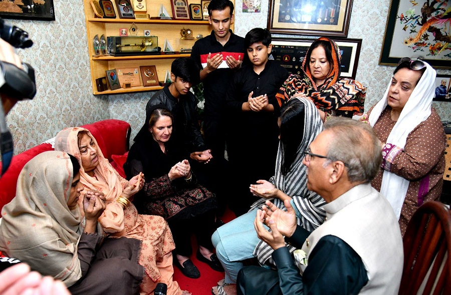 Islamabad: President Dr Arif Alvi offering Fateha over the sad demise of journalist Arshad Shareef, at his residence.