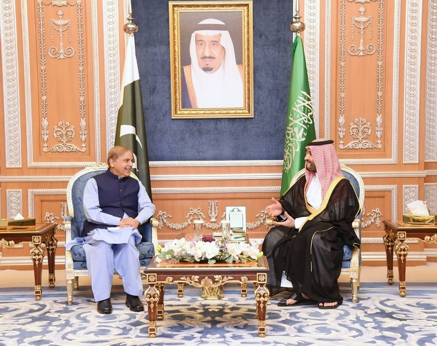 Prime Minister Muhammad Shehbaz Sharif meets Crown Prince and Prime Minister of Kingdom of Saudi Arabia HRH Muhammad Bin Salman in Royal Palace Riyadh, Saudi Arabia.