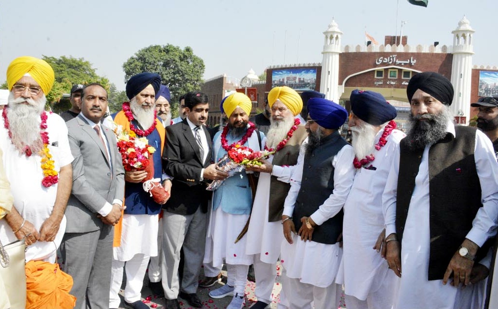 Additional Secretary Shrines, Raja Shahid Saleem welcoming Shikh Yatrees arriving at Jcp Wagha Lahore to attend their religious ceremony at Punja Sahib Hassanabdal.