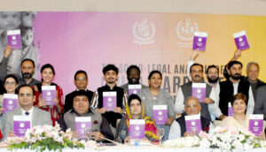 ISLAMABAD: Federal Minister for Human Rights Mian Riaz Hussain Pirzada posing for a group photograph along with participants after the seminar title “The Scoio-Legal Analysis of Child Marriage in Pakistan” at a local hotel in Federal Capital
