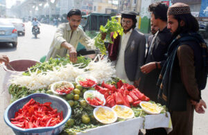 RAWALPINDI: A vendor is selling radish on his pushcart alongside at Murree Road in the city