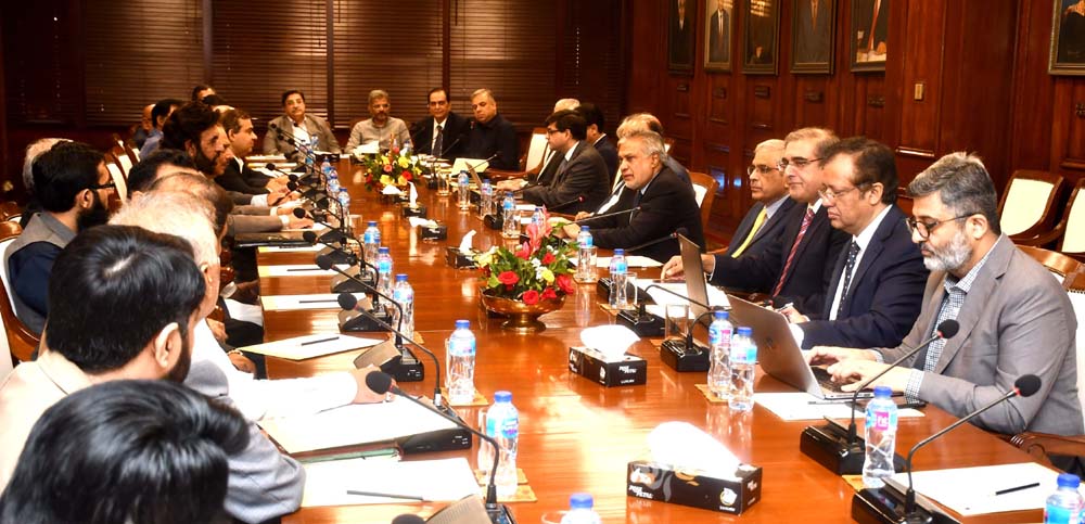 KARACHI: Federal Minister for Finance and Revenue, Ishaq Dar, chairing a meeting with the heads of Forex Echange Companies at State Bank of Pakistan