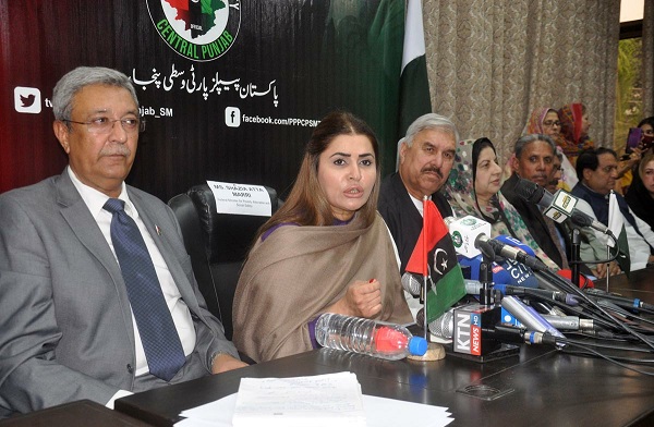 LAHORE: Ms Shazia Marri, Federal Minister for Poverty Alleviation and Social Security hold a press conference at Pakistan People’s Party Secretariat 158-C Model Town.